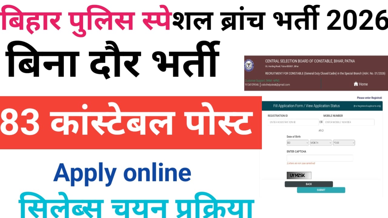 Bihar Police Special Branch Vacancy 2026 | बिहार पुलिस स्पेशल ब्रांच में आई भर्ती 2026 बिना दौर के होगा चयन